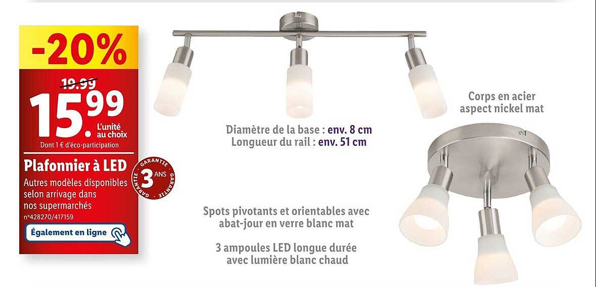 Découvrez l'offre de Plafonnier À Led chez Lidl! Cette offre fantastique est maintenant disponible dans le nouveau catalogue de Lidl. Profitez de cette occasion et économisez considérablement sur votre achat.