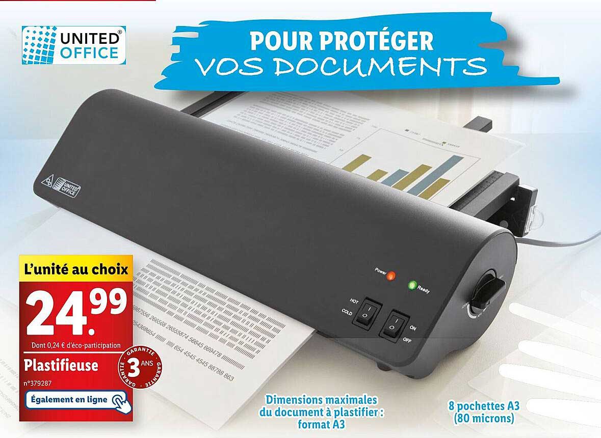 Découvrez dès maintenant la offre Plastifieuse dans le catalogue de Lidl. Cette offre est valable du 17/10/2024 au 21/10/2024.