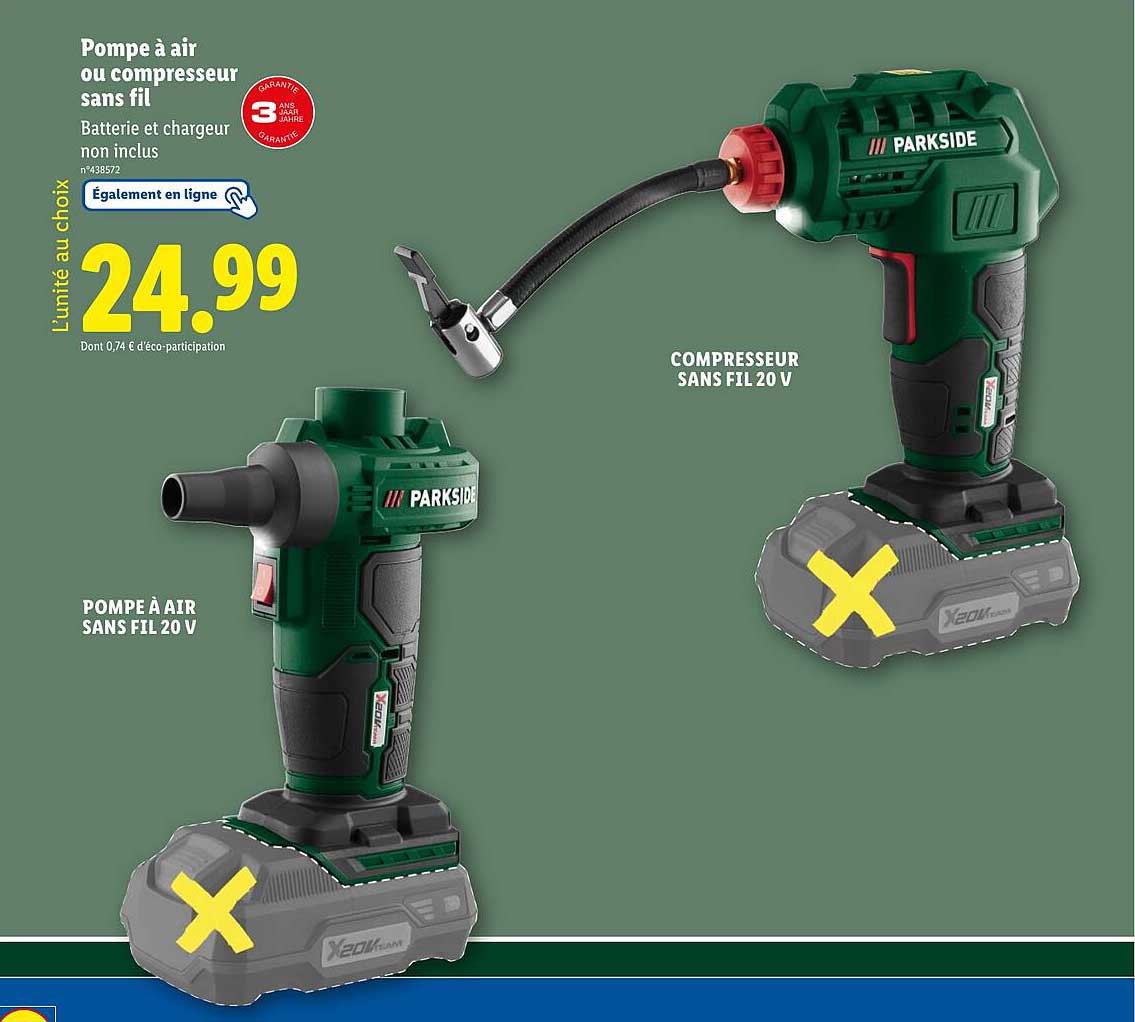 Découvrez dès maintenant la offre Pompe à air ou compresseur sans fil dans le catalogue de Lidl. Cette offre est valable du 20/03/2025 au 26/03/2025.