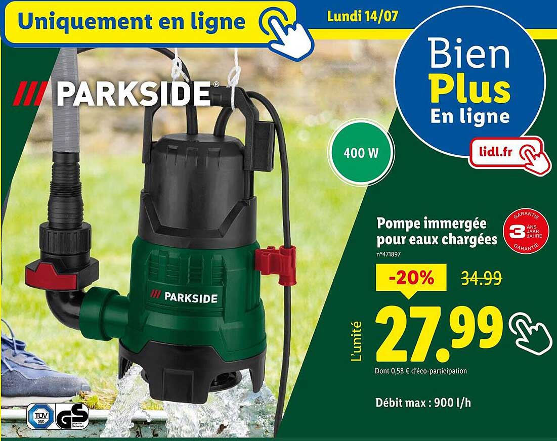 Découvrez dès maintenant la offre Pompe immergée pour eaux chargées dans le catalogue de Lidl. Cette offre est valable du 10/07/2025 au 14/07/2025.