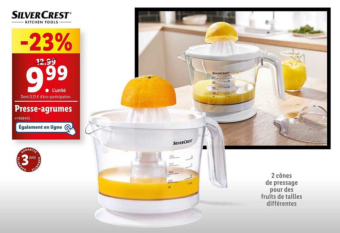 Découvrez l'offre de Presse-Agrumes chez Lidl! Cette offre fantastique est maintenant disponible dans le nouveau catalogue de Lidl. Profitez de cette occasion et économisez considérablement sur votre achat.