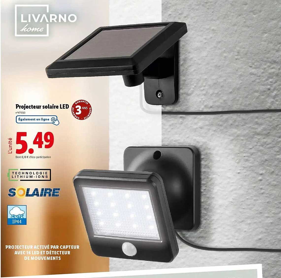 Découvrez dès maintenant la offre Projecteur solaire LED dans le catalogue de Lidl. Cette offre est valable du 10/04/2025 au 16/04/2025.