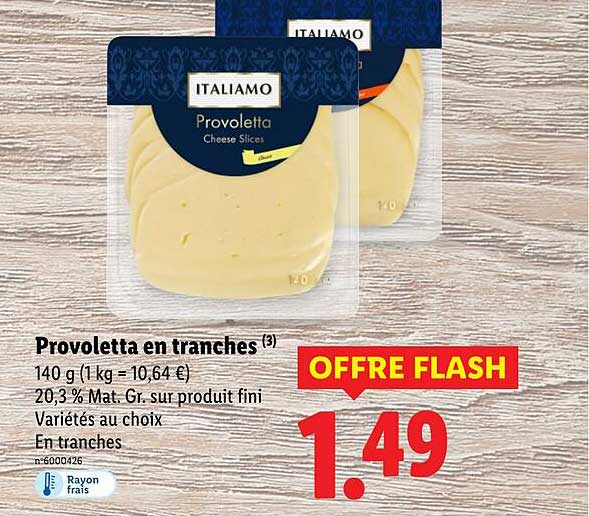 Découvrez une promotion irrésistible sur la Provolettra en tranches, parfaite pour vos snacks ou vos plats cuisinés ! Avec un prix aussi bas, c'est l'occasion d'ajouter une touche savoureuse à vos repas. Cette offre, valable pour une durée limitée, vous permet d'acquérir ce fromage doux et fondant à un tarif très avantageux.