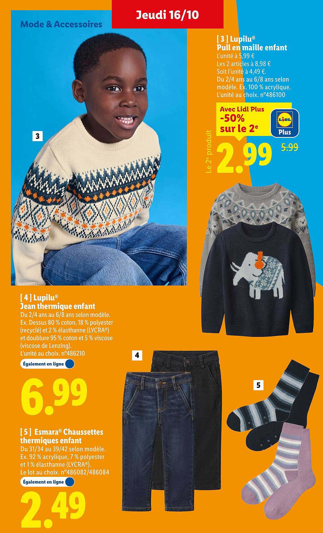 Découvrez dès maintenant la offre Pull en maille enfant dans le catalogue de Lidl. Cette offre est valable du 16/10/2025 au 20/10/2025.