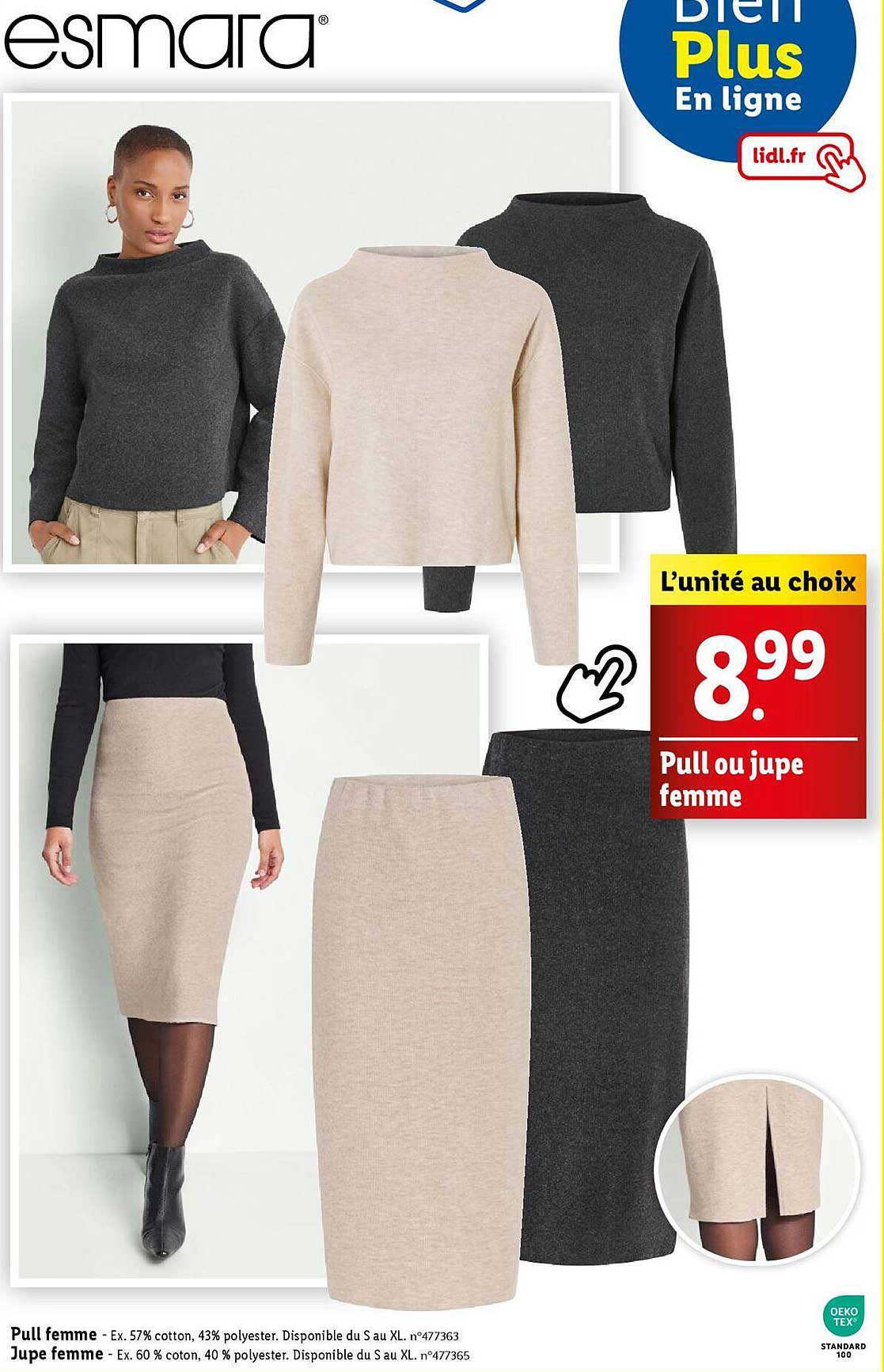 Découvrez la superbe offre de Pull Ou Jupe Femme dans le nouveau catalogue de Lidl. En plus de cette offre, vous trouverez de nombreuses autres réductions attrayantes. Vous pouvez facilement commander le Pull Ou Jupe Femme en ligne via le site web de Lidl ou l'acheter dans un magasin près de chez vous.