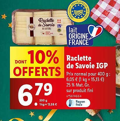 Découvrez l'offre de Raclette De Savoie Igp chez Lidl! Cette offre fantastique est maintenant disponible dans le nouveau catalogue de Lidl. Profitez de cette occasion et économisez considérablement sur votre achat.