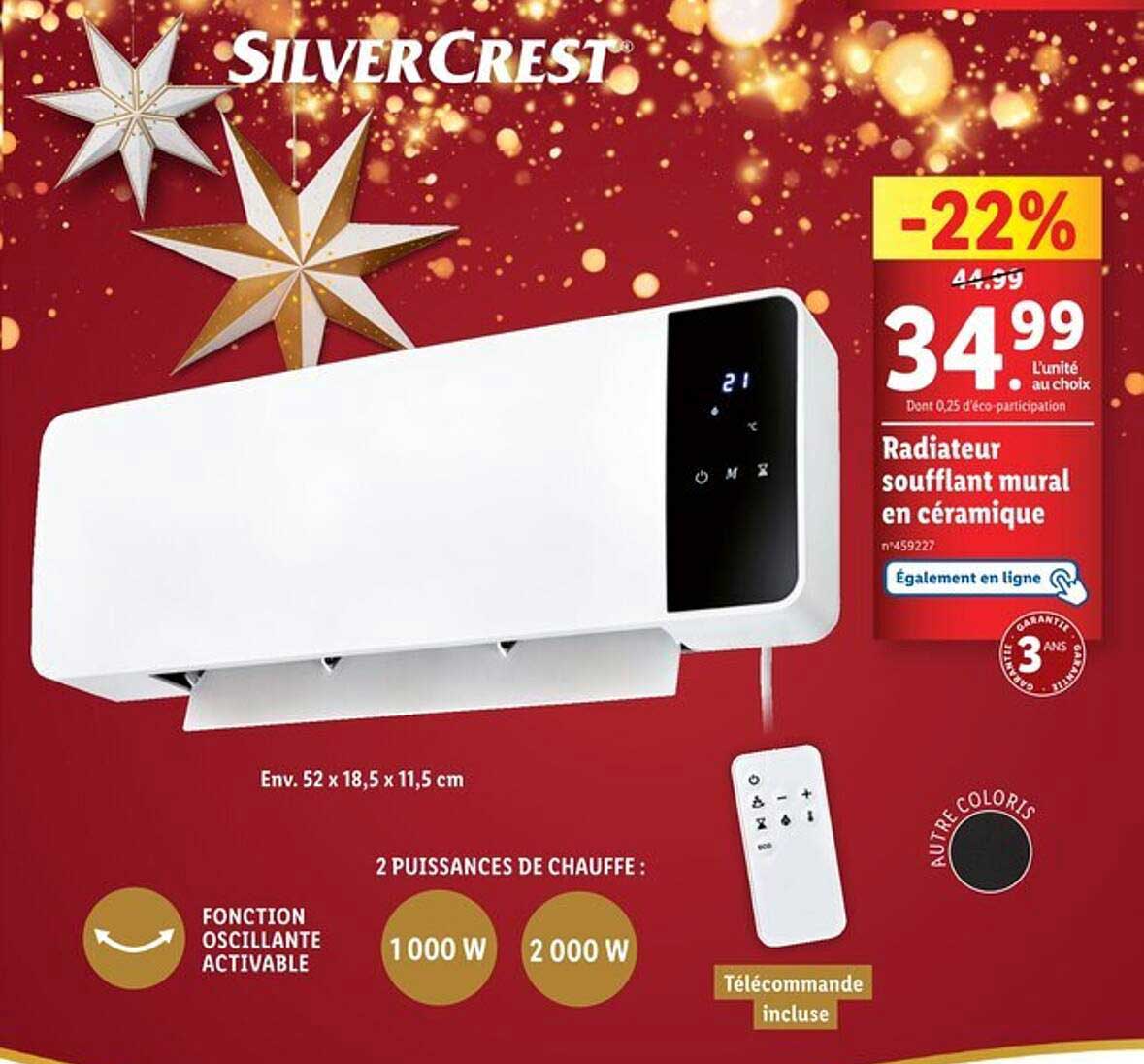 Découvrez l'offre de Radiateur Soufflant Mural En Céramique chez Lidl! Cette offre fantastique est maintenant disponible dans le nouveau catalogue de Lidl. Profitez de cette occasion et économisez considérablement sur votre achat.