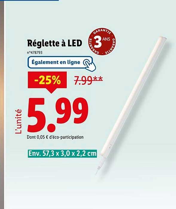 Découvrez dès maintenant la offre Réglette à LED dans le catalogue de Lidl. Cette offre est valable du 31/07/2025 au 04/08/2025.