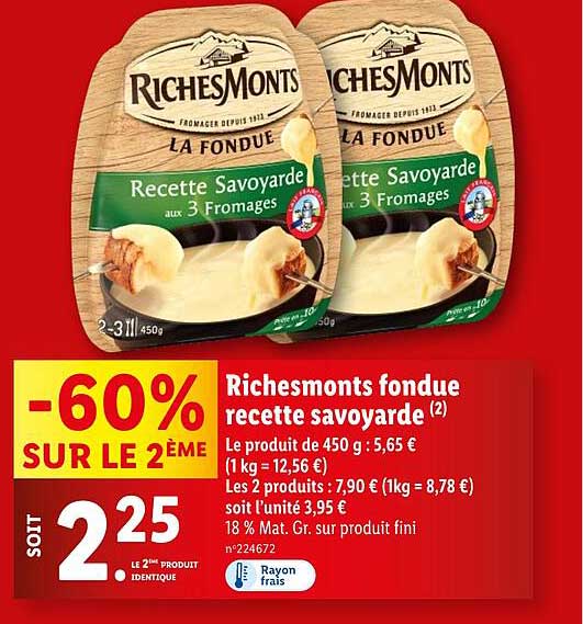 Offre de Richesmonts Fondue Recette Savoyarde chez Lidl