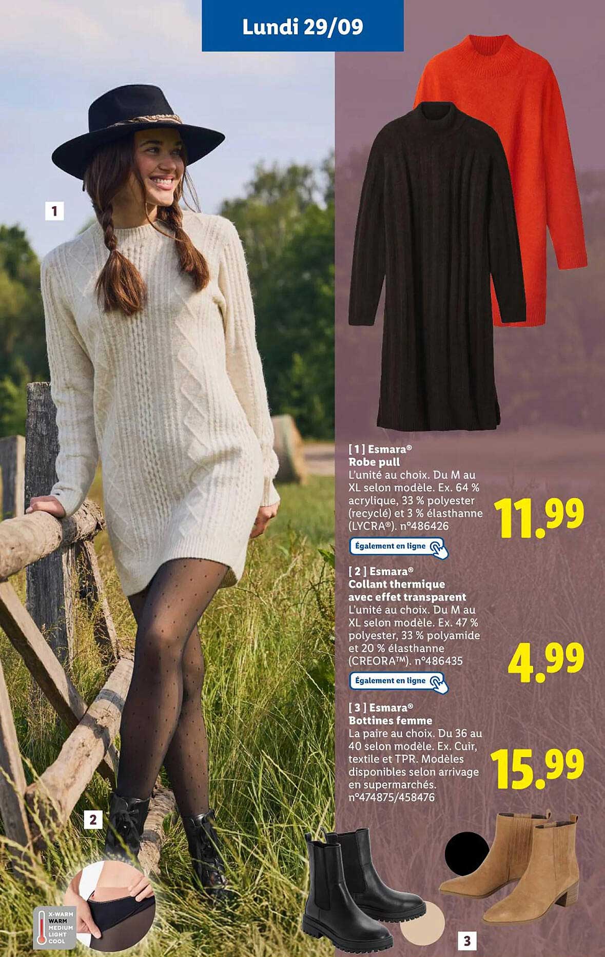 Découvrez dès maintenant la offre Robe pull Esmara® dans le catalogue de Lidl. Cette offre est valable du 29/09/2025 au 02/10/2025.