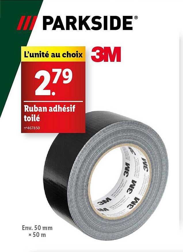 Découvrez dès maintenant la offre Ruban adhésiftoilé dans le catalogue de Lidl. Cette offre est valable du 25/09/2024 au 01/10/2024.
