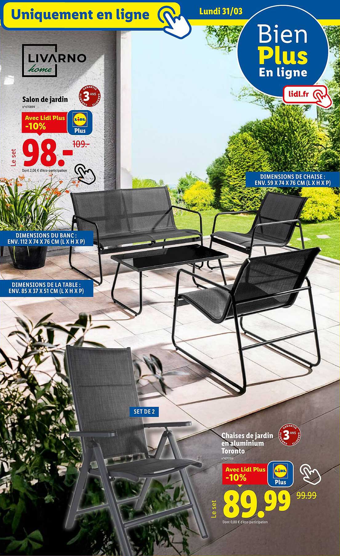 Découvrez dès maintenant la offre Salon de Jardin dans le catalogue de Lidl. Cette offre est valable du 27/03/2025 au 02/04/2025.