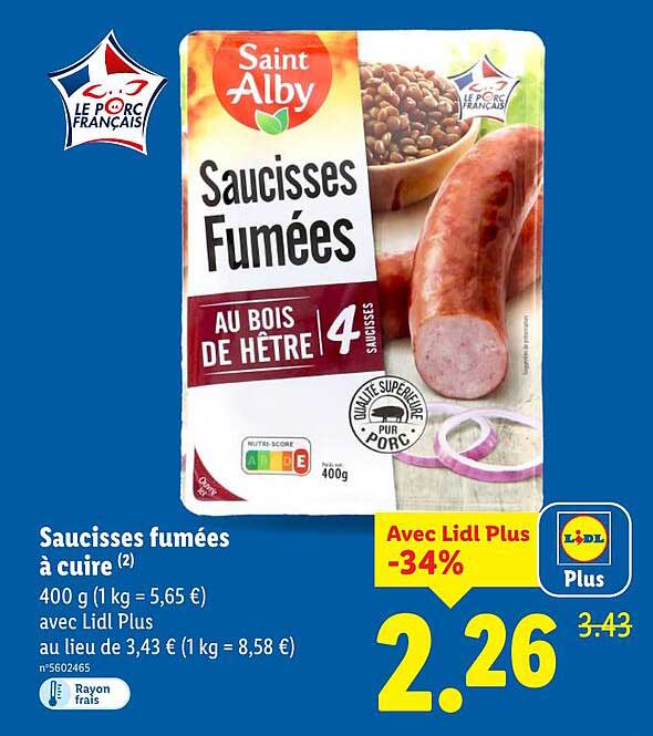 Découvrez dès maintenant la offre Saucisses fumées à cuire dans le catalogue de Lidl. Cette offre est valable du 04/12/2025 au 10/12/2025.