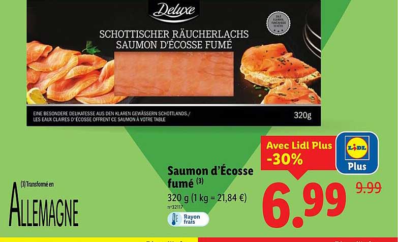 Découvrez dès maintenant la offre Saumon d’Écosse fumé dans le catalogue de Lidl. Cette offre est valable du 17/04/2025 au 23/04/2025.
