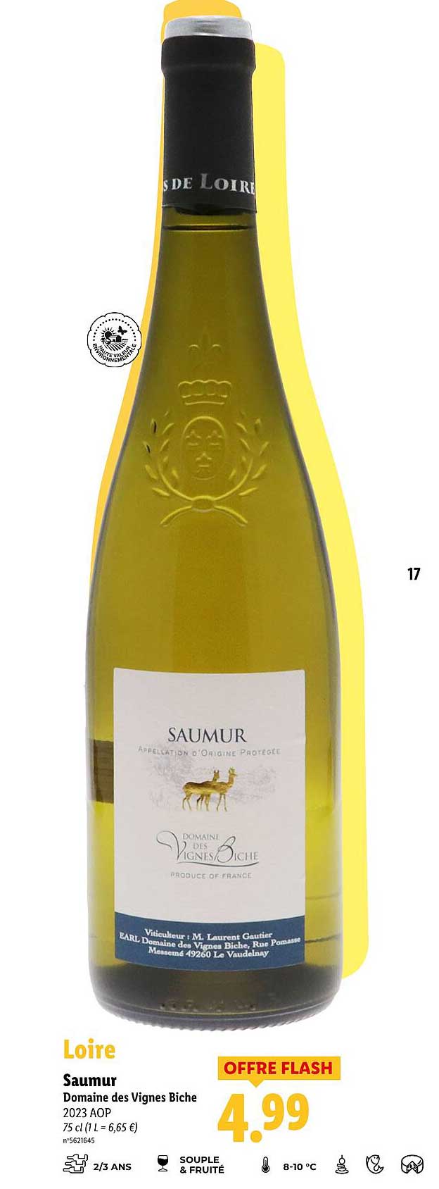 Découvrez dès maintenant la offre Saumur Domaine des Vignes Biche dans le catalogue de Lidl. Cette offre est valable du 06/03/2025 au 31/03/2025.