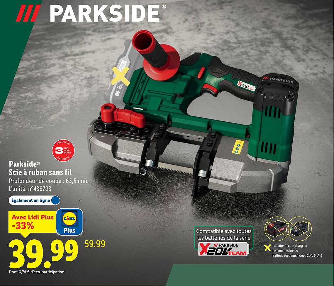 Découvrez dès maintenant la offre Scie à ruban sans fil Parkside dans le catalogue de Lidl. Cette offre est valable du 16/10/2025 au 20/10/2025.