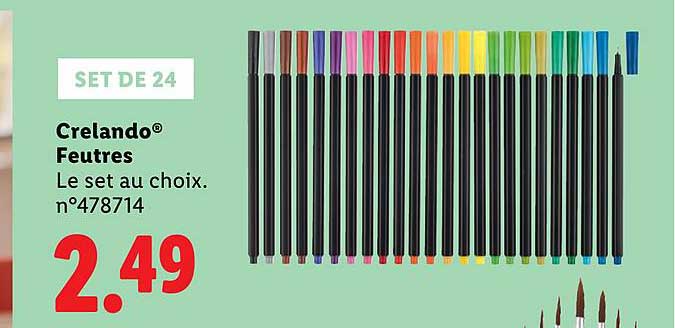 Découvrez dès maintenant la offre Set de 24 Feutres Crelando® dans le catalogue de Lidl. Cette offre est valable du 25/09/2025 au 29/09/2025.