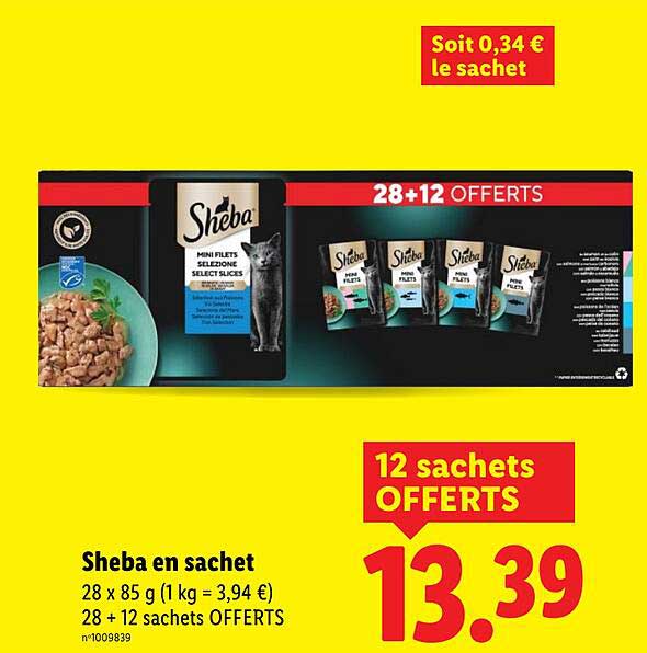 Découvrez dès maintenant la offre Sheba en sachet dans le catalogue de Lidl. Cette offre est valable du 23/10/2025 au 29/10/2025.