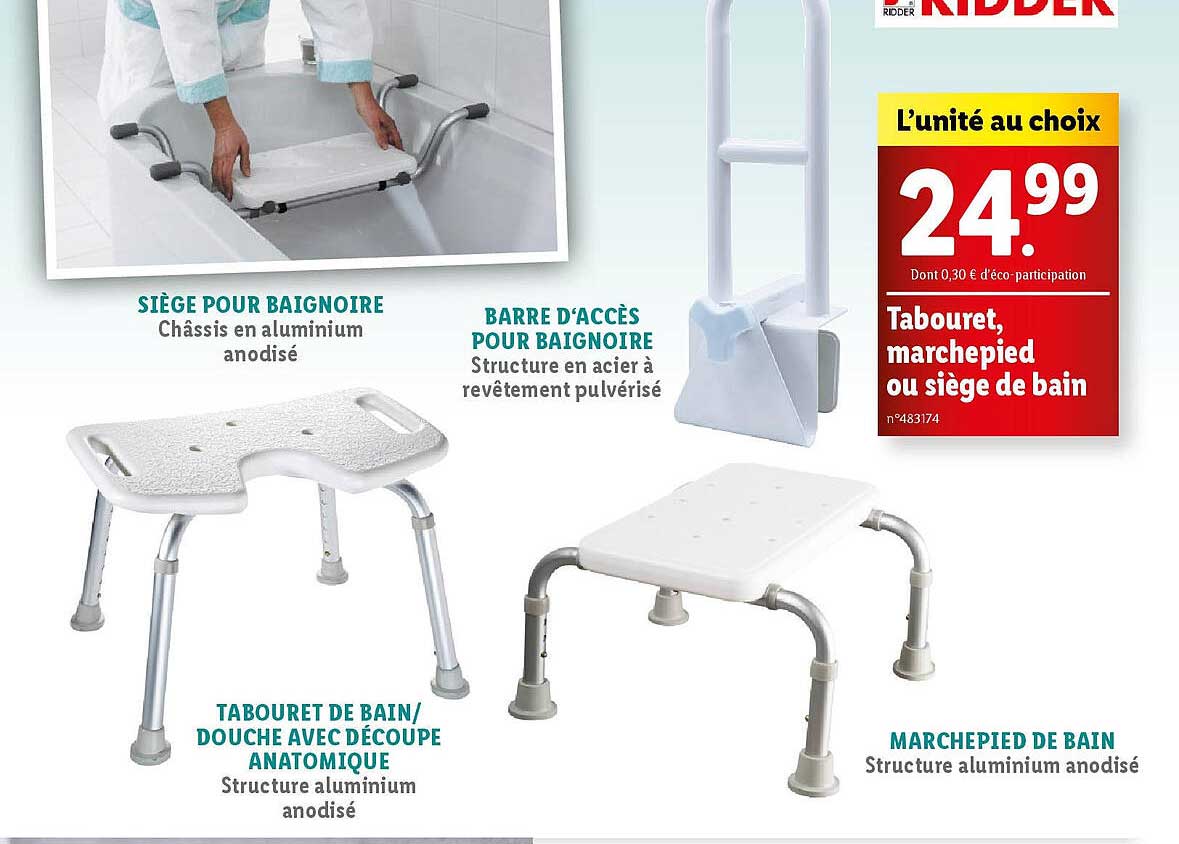 Découvrez dès maintenant la offre Siège pour baignoire Barre d'accès pour baignoire Tabouret de bain/ douche avec découpe anatomique Marchepied de bain dans le catalogue de Lidl. Cette offre est valable du 02/01/2025 au 06/01/2025.