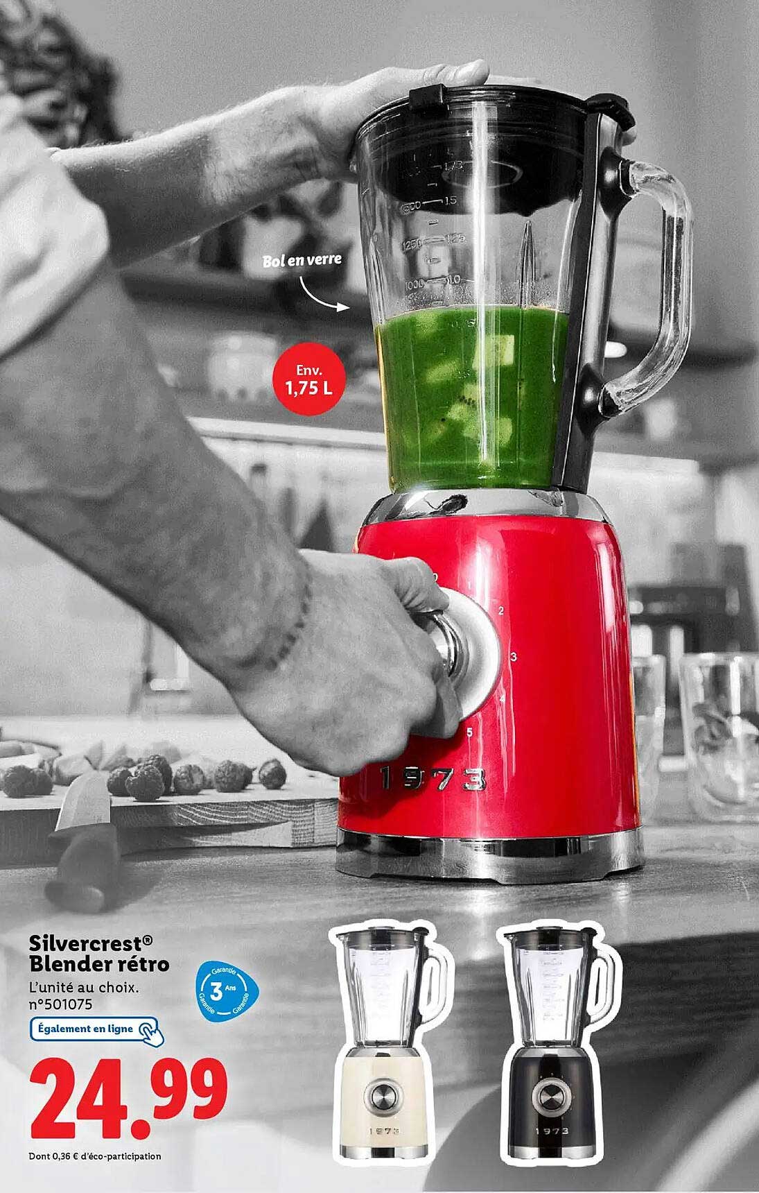Découvrez dès maintenant la offre Silvercrest® Blender rétro dans le catalogue de Lidl. Cette offre est valable du 22/09/2025 au 25/09/2025.