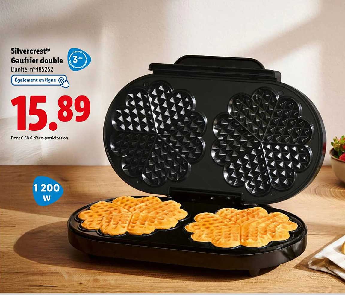 Découvrez dès maintenant la offre Silvercrest® Gaufrier double dans le catalogue de Lidl. Cette offre est valable du 29/09/2025 au 02/10/2025.