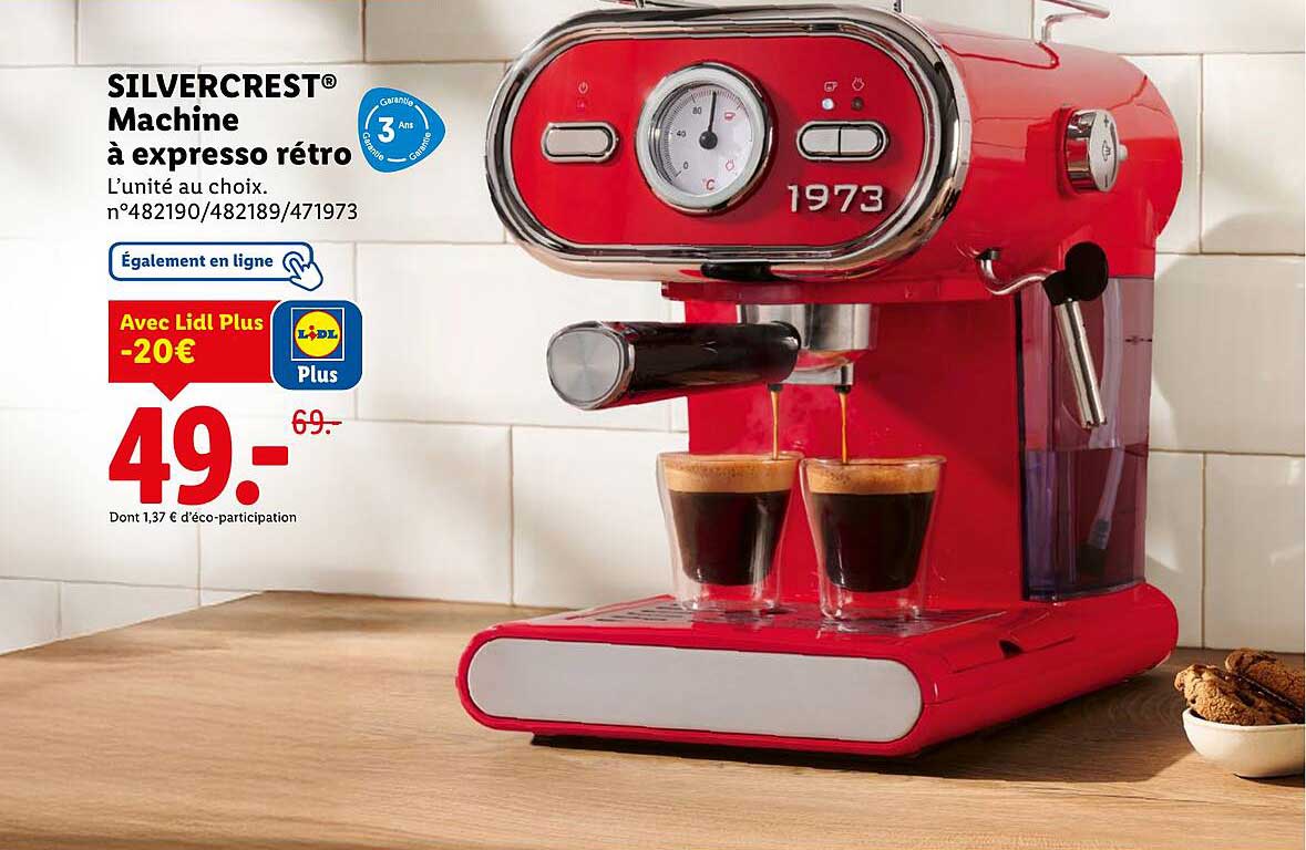 Découvrez dès maintenant la offre SILVERCREST® Machine à expresso rétro dans le catalogue de Lidl. Cette offre est valable du 25/09/2025 au 29/09/2025.