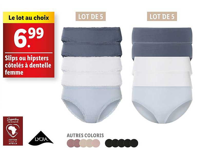 Découvrez l'offre de Slips Ou Hipsters Côtelés À Dentelle Femme chez Lidl! Cette offre fantastique est maintenant disponible dans le nouveau catalogue de Lidl. Profitez de cette occasion et économisez considérablement sur votre achat.