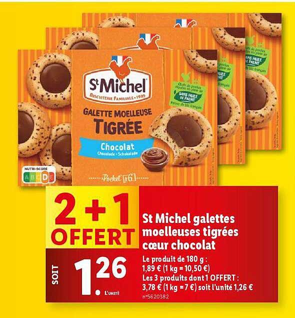 Découvrez dès maintenant la offre St Michel galettes moelleuses tigées cœur chocolat dans le catalogue de Lidl. Cette offre est valable du 02/10/2024 au 08/10/2024.