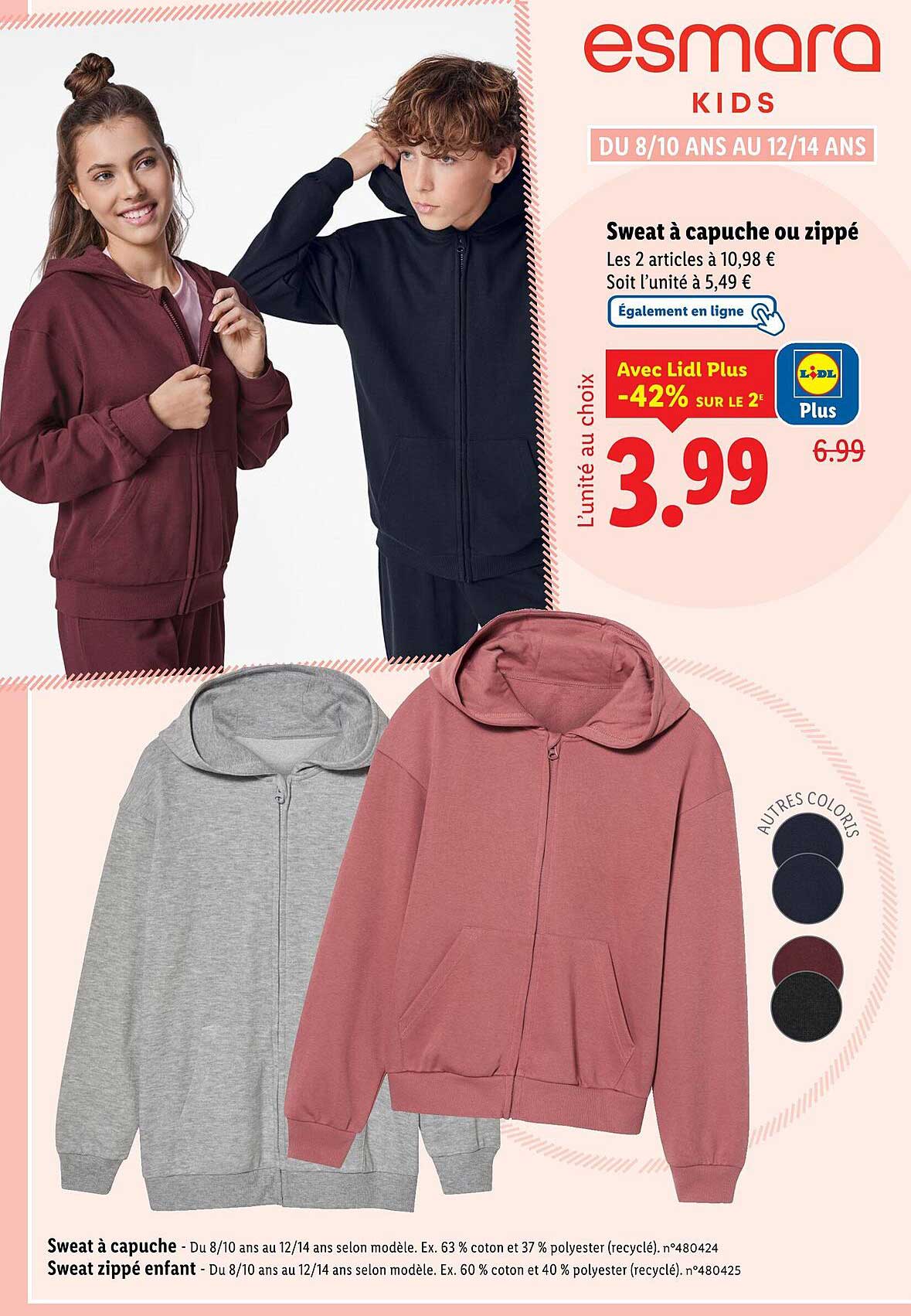 Découvrez dès maintenant la offre Sweat à capuche ou zippé dans le catalogue de Lidl. Cette offre est valable du 17/07/2025 au 21/07/2025.