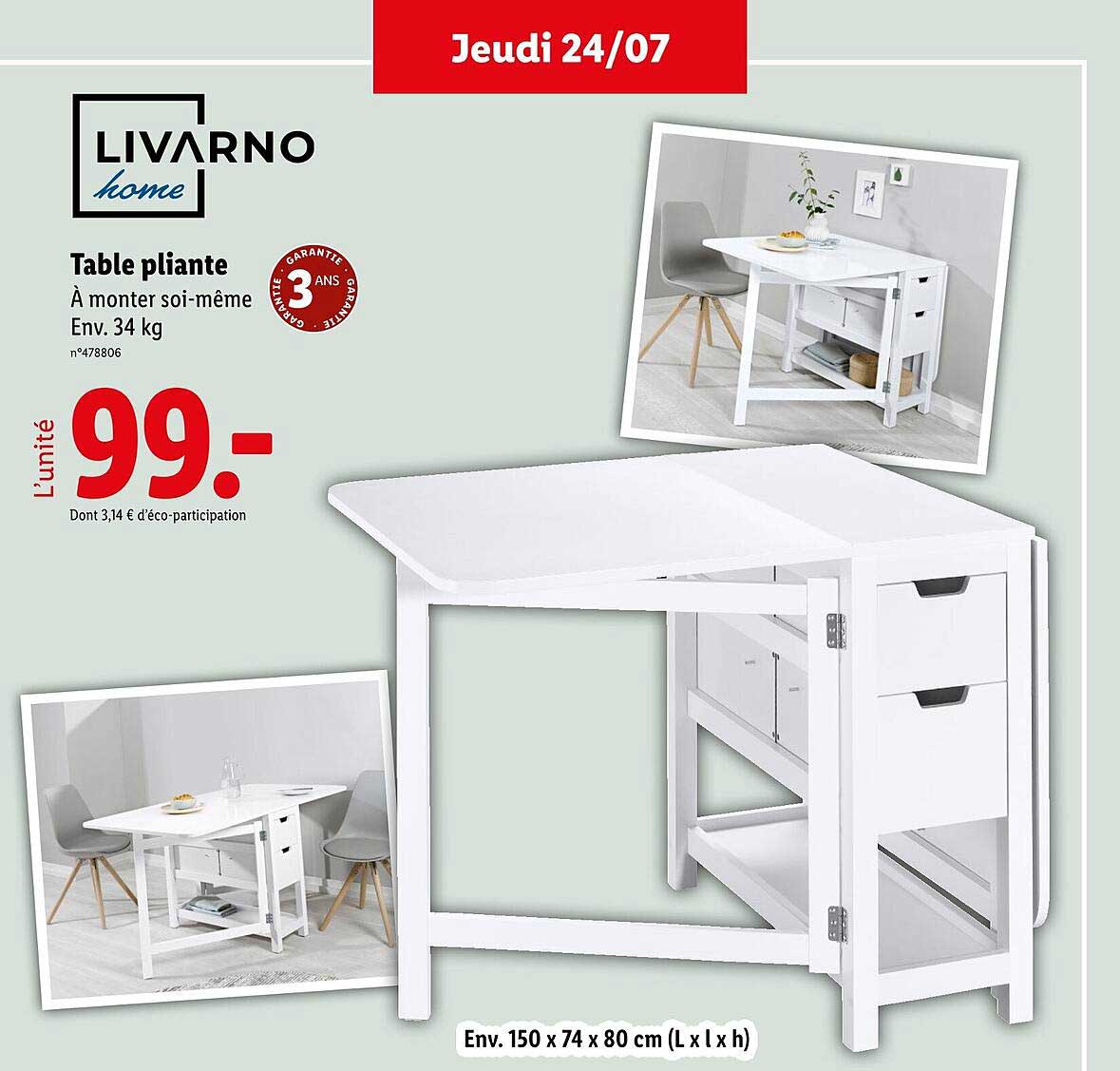 Découvrez dès maintenant la offre Table pliante dans le catalogue de Lidl. Cette offre est valable du 21/07/2025 au 24/07/2025.