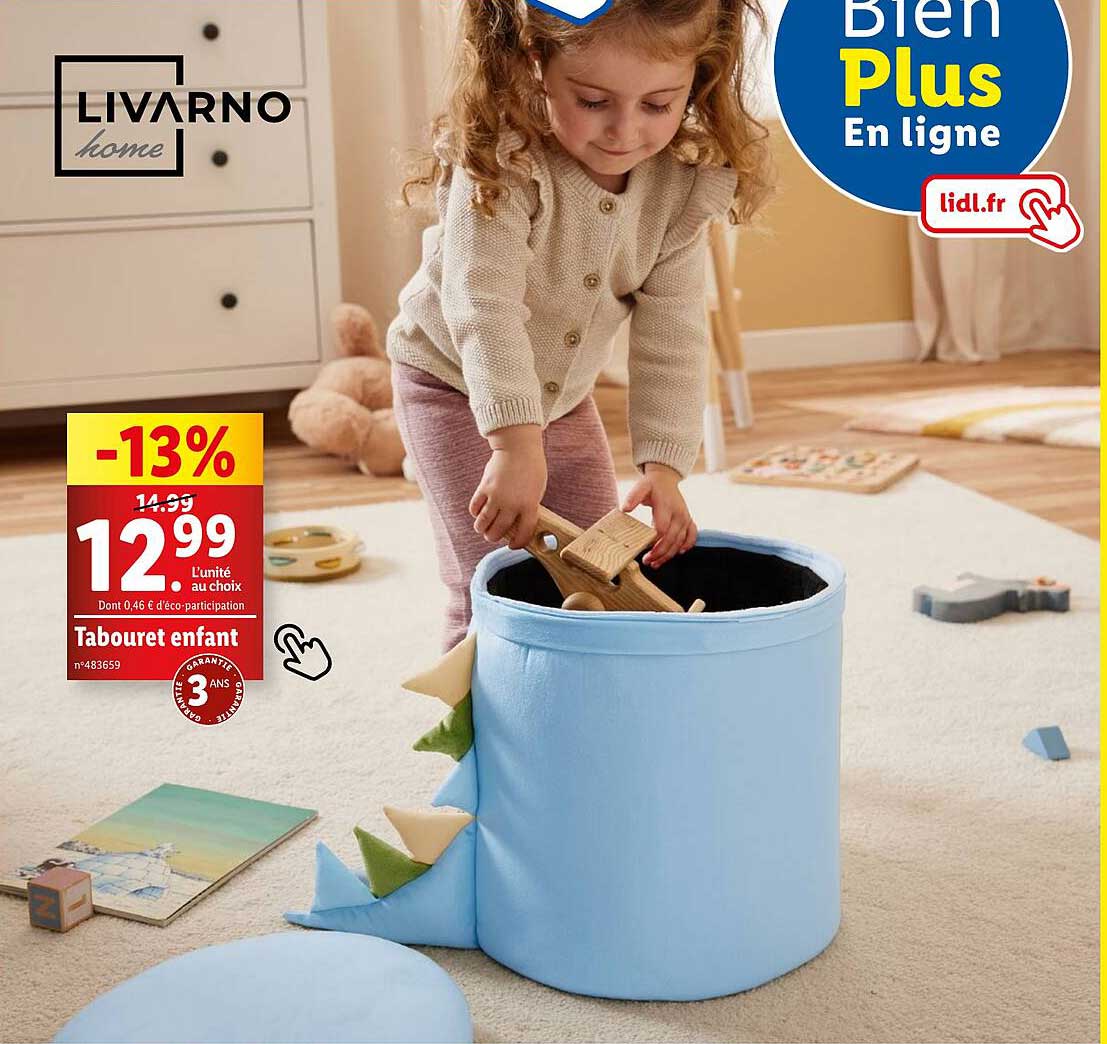 Découvrez dès maintenant la offre Tabouret enfant dans le catalogue de Lidl. Cette offre est valable du 29/01/2025 au 05/02/2025.