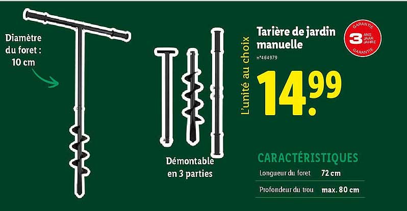 Découvrez l'offre de Tarrière De Jardin Manuelle chez Lidl! Cette offre fantastique est maintenant disponible dans le nouveau catalogue de Lidl. Profitez de cette occasion et économisez considérablement sur votre achat.