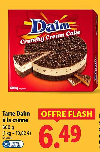 Découvrez dès maintenant la offre Tarte Daim à la crème dans le catalogue de Lidl. Cette offre est valable du 23/10/2025 au 29/10/2025.
