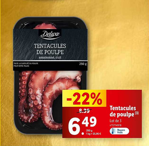 Découvrez dès maintenant la offre Tentacules de poulpe dans le catalogue de Lidl. Cette offre est valable du 06/11/2024 au 12/11/2024.