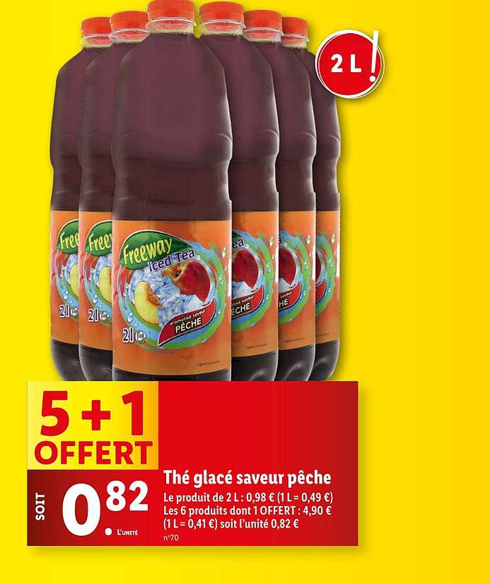Découvrez l'offre de Thé Glacé Saveur Pêche chez Lidl! Cette offre fantastique est maintenant disponible dans le nouveau catalogue de Lidl. Profitez de cette occasion et économisez considérablement sur votre achat.