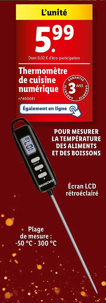 Découvrez l'offre de Thermomètre De Cuisine Numérique chez Lidl! Cette offre fantastique est maintenant disponible dans le nouveau catalogue de Lidl. Profitez de cette occasion et économisez considérablement sur votre achat.