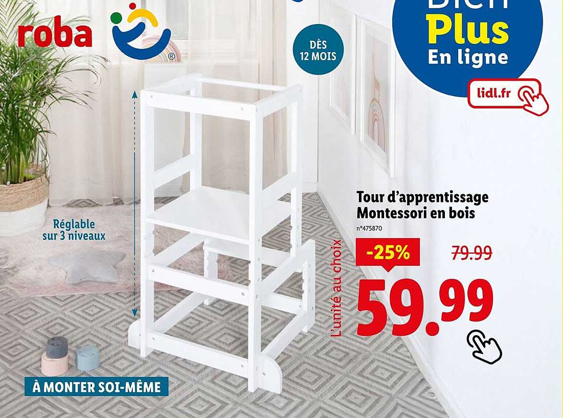 Découvrez dès maintenant la offre Tour d’apprentissage Montessori en bois dans le catalogue de Lidl. Cette offre est valable du 17/07/2025 au 21/07/2025.