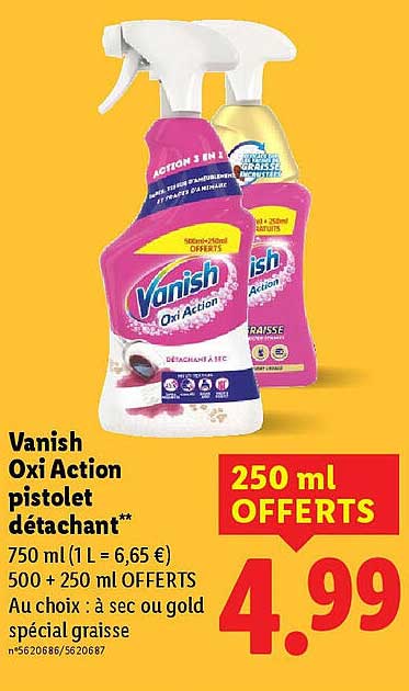 Découvrez dès maintenant la offre Vanish Oxi Action pistolet détachant dans le catalogue de Lidl. Cette offre est valable du 28/08/2025 au 03/09/2025.