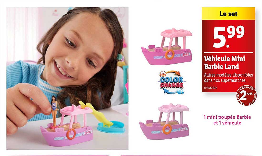 Découvrez dès maintenant la offre Véhicule Mini Barbie Land dans le catalogue de Lidl. Cette offre est valable du 06/11/2024 au 11/11/2024.