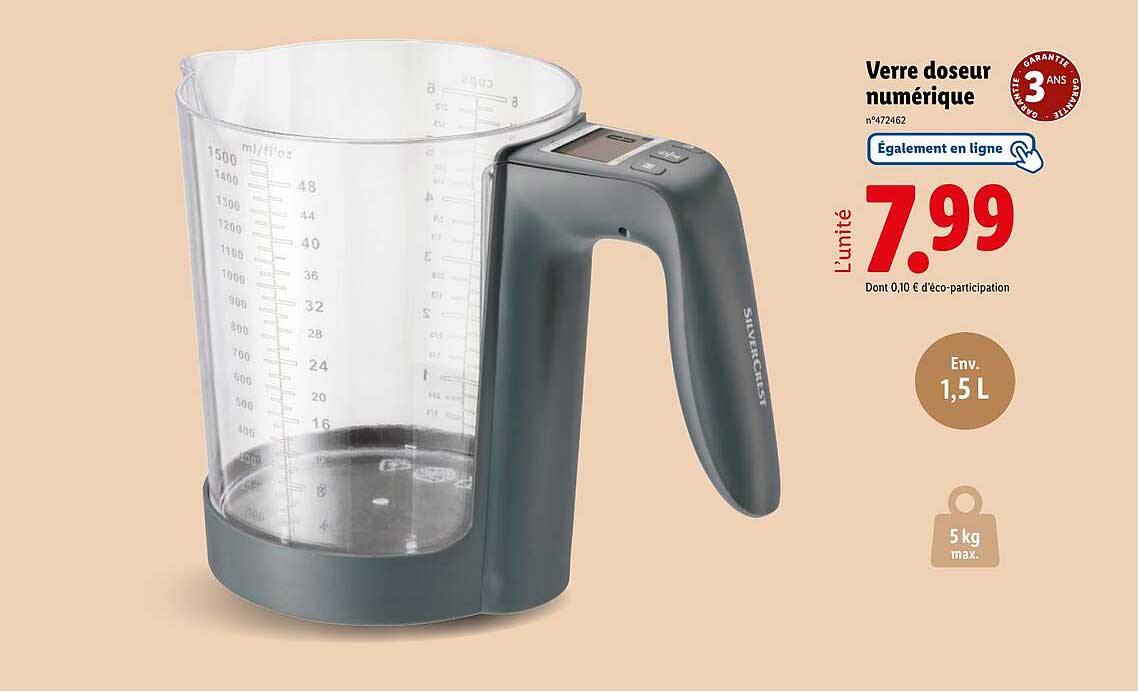 Découvrez dès maintenant la offre Verre doseur numérique dans le catalogue de Lidl. Cette offre est valable du 27/03/2025 au 02/04/2025.