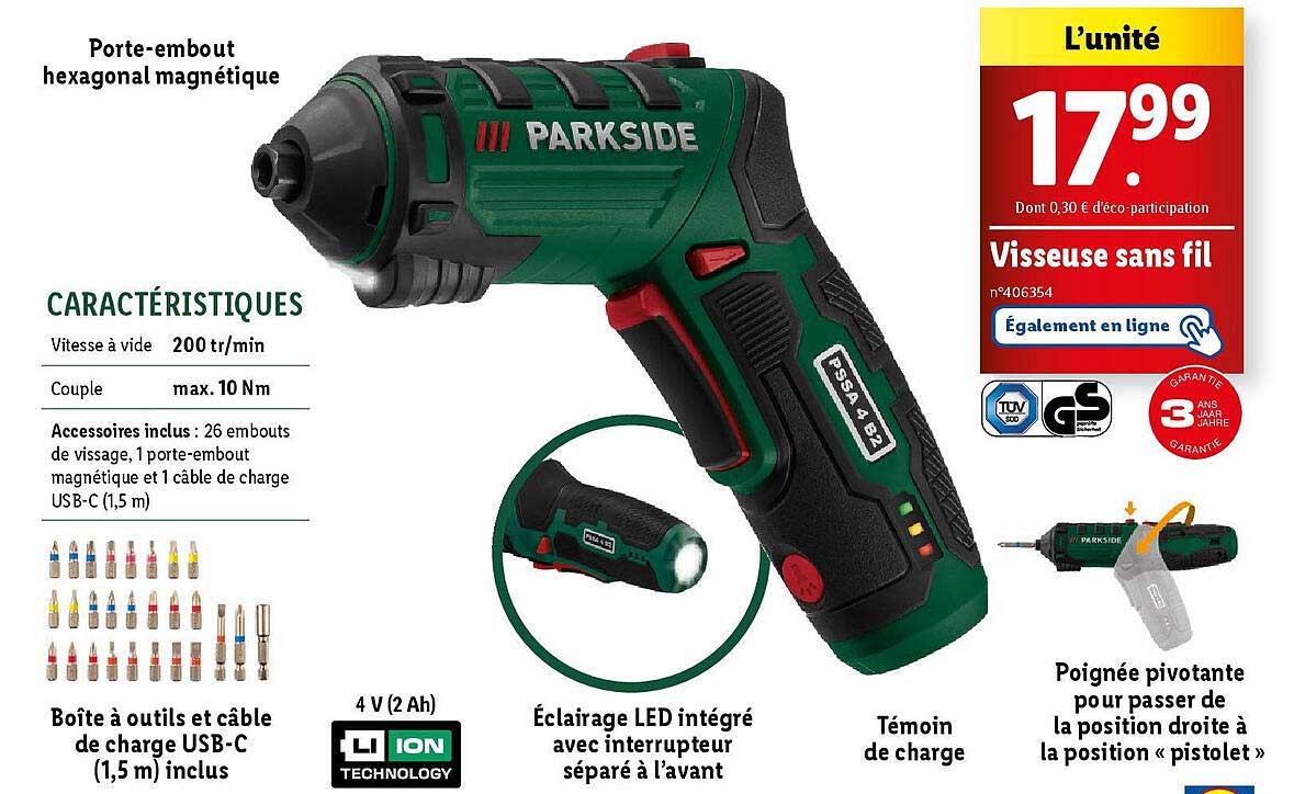 Découvrez la superbe offre de Visseuse Sans Fil dans le nouveau catalogue de Lidl. En plus de cette offre, vous trouverez de nombreuses autres réductions attrayantes. Vous pouvez facilement commander le Visseuse Sans Fil en ligne via le site web de Lidl ou l'acheter dans un magasin près de chez vous.