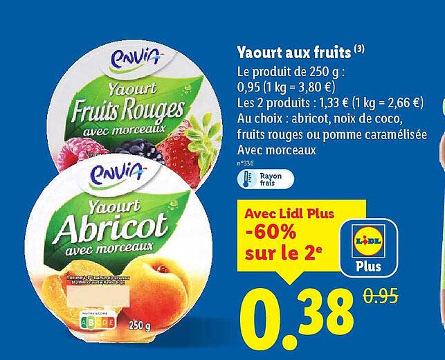 Découvrez dès maintenant la offre Yaourt aux fruits dans le catalogue de Lidl. Cette offre est valable du 25/09/2025 au 01/10/2025.
