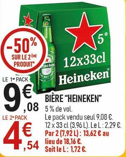 La "Heineken" est réputée pour sa qualité supérieure, offrant un goût équilibré et une douceur unique. Que ce soit pour une fête ou un barbecue, cette bière s'adapte à toutes les occasions. En plus, avec cette offre, vous pouvez profiter d'une réduction sur le deuxième pack, ce qui rend chaque gorgée encore plus agréable.