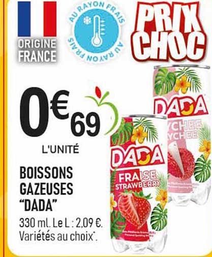 Découvrez les joyeuses boissons gazeuses “DADA” à un prix irrésistible ! Ces délicieuses boissons sont parfaites pour se désaltérer lors des journées ensoleillées ou pour accompagner vos repas. Avec une variété de choix, il y en a pour tous les goûts, que vous soyez amateur de fraise, de litchi ou d'autres saveurs fruitées. Profitez de cette offre exceptionnelle valable du 1er au 7 septembre 2025.