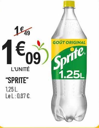 Au cours de cette promotion, le prix de la bouteille de Sprite est exceptionnellement réduit à 1,09 €, au lieu de 1,49 € habituellement. Cela représente une belle économie pour les consommateurs, incitant à faire le plein pour profiter de cette boisson rafraîchissante. N'attendez plus pour en profiter !