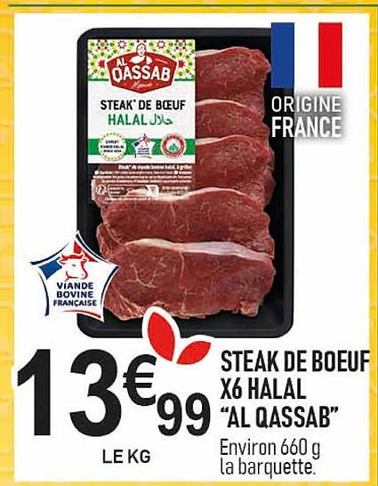 Offre de Steak De Bœuf X6 Halal "Al Qassab" chez marché frais Géant