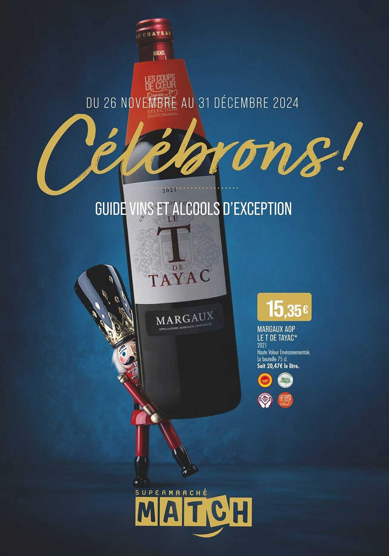 Découvrez dès maintenant la offre Célébrons ! Guide vins et alcools d'exception dans le catalogue de Match. Cette offre est valable du 26/11/2024 au 31/12/2024.