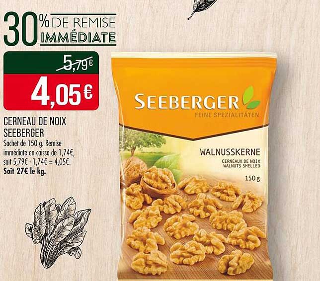 Découvrez la superbe offre de Cerneau De Noix Seegerger dans le nouveau catalogue de Match. En plus de cette offre, vous trouverez de nombreuses autres réductions attrayantes. Vous pouvez facilement commander le Cerneau De Noix Seegerger en ligne via le site web de Match ou l'acheter dans un magasin près de chez vous.