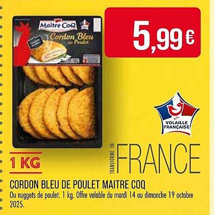 Découvrez dès maintenant la offre CORDON BLEU DE POULET MAITRE COQ dans le catalogue de Match. Cette offre est valable du 14/10/2025 au 26/10/2025.