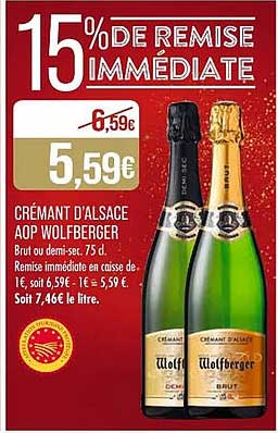 Découvrez l'offre de Crémant D'alsace Aop Wolfberger chez Match! Cette offre fantastique est maintenant disponible dans le nouveau catalogue de Match. Profitez de cette occasion et économisez considérablement sur votre achat.